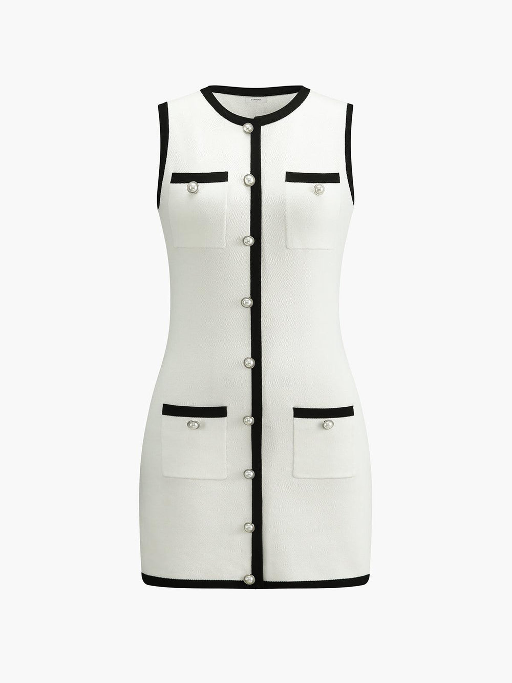 Multi Pocket Button Sleeveless Short Sweater Dress