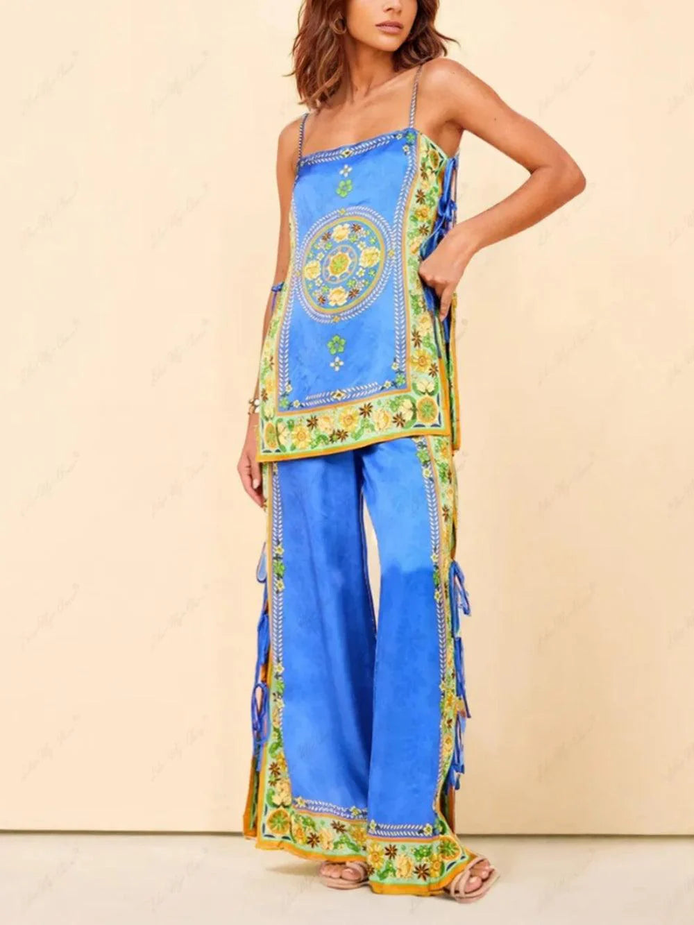 Inspired by the intricate patterns of mosaic tiles, this set features a stunning design that is sure to turn heads wherever you go. Carefully crafted with attention to detail, the gorgeous pattern and rich colors add a touch of luxury to your outfit, while the lightweight fabric ensures breathability and easy mobility.